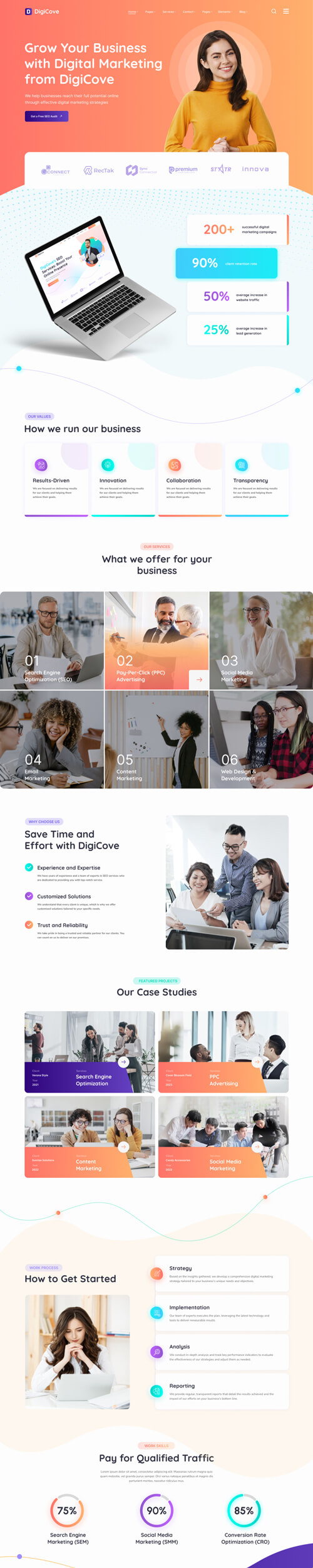 With the Digicove, you can easily create your own complete website. The inner pages have been optimally designed and arranged so that you can quickly and easily adjust your website to your needs.